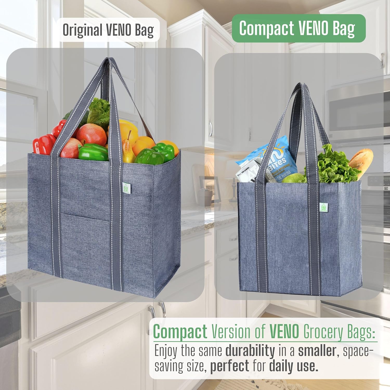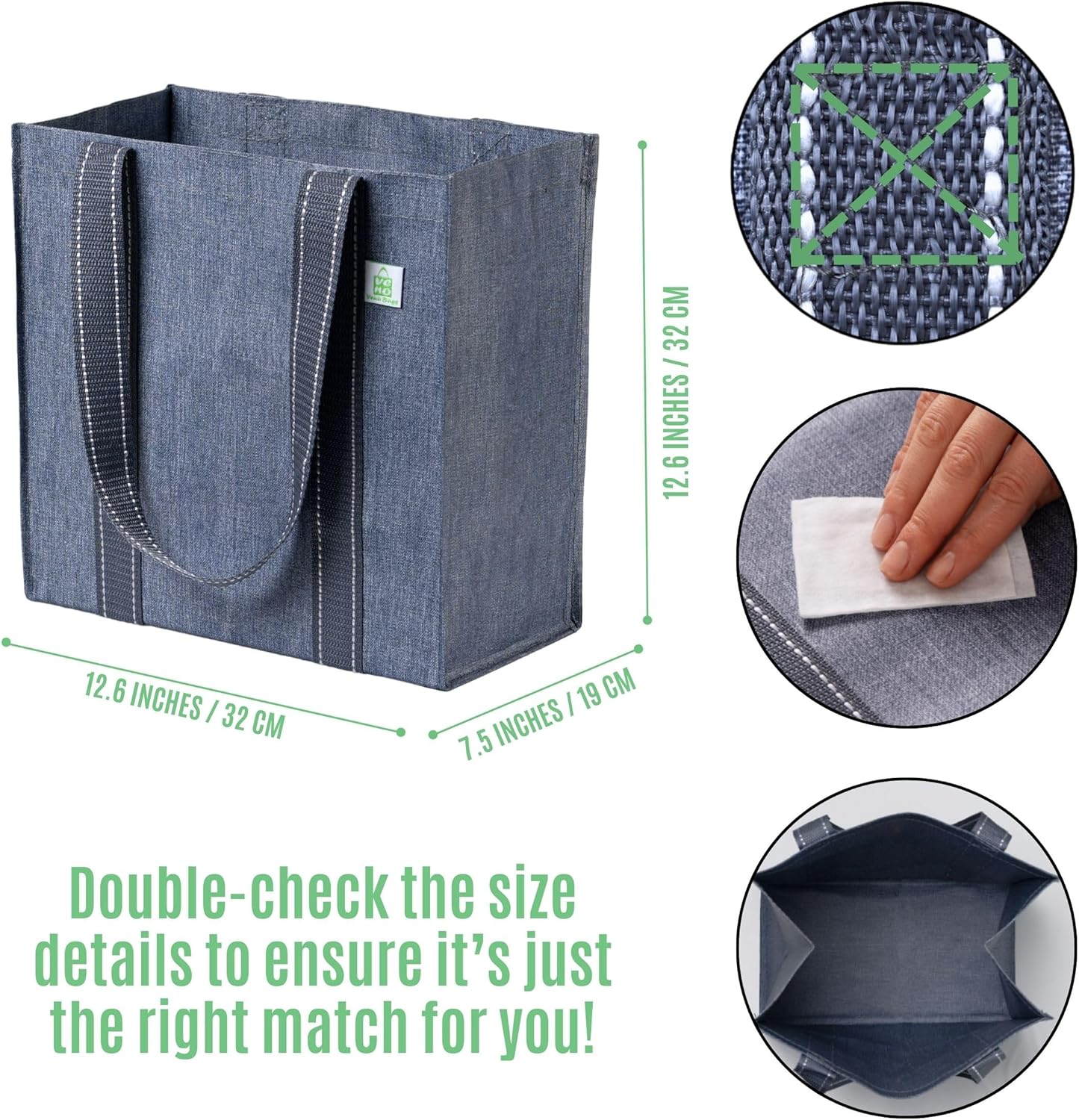 4 Pack Reusable Grocery Bags, Shopping Bags w/Handles, Hard Bottom, Compact Size. Foldable, Heavy Duty Utility Tote