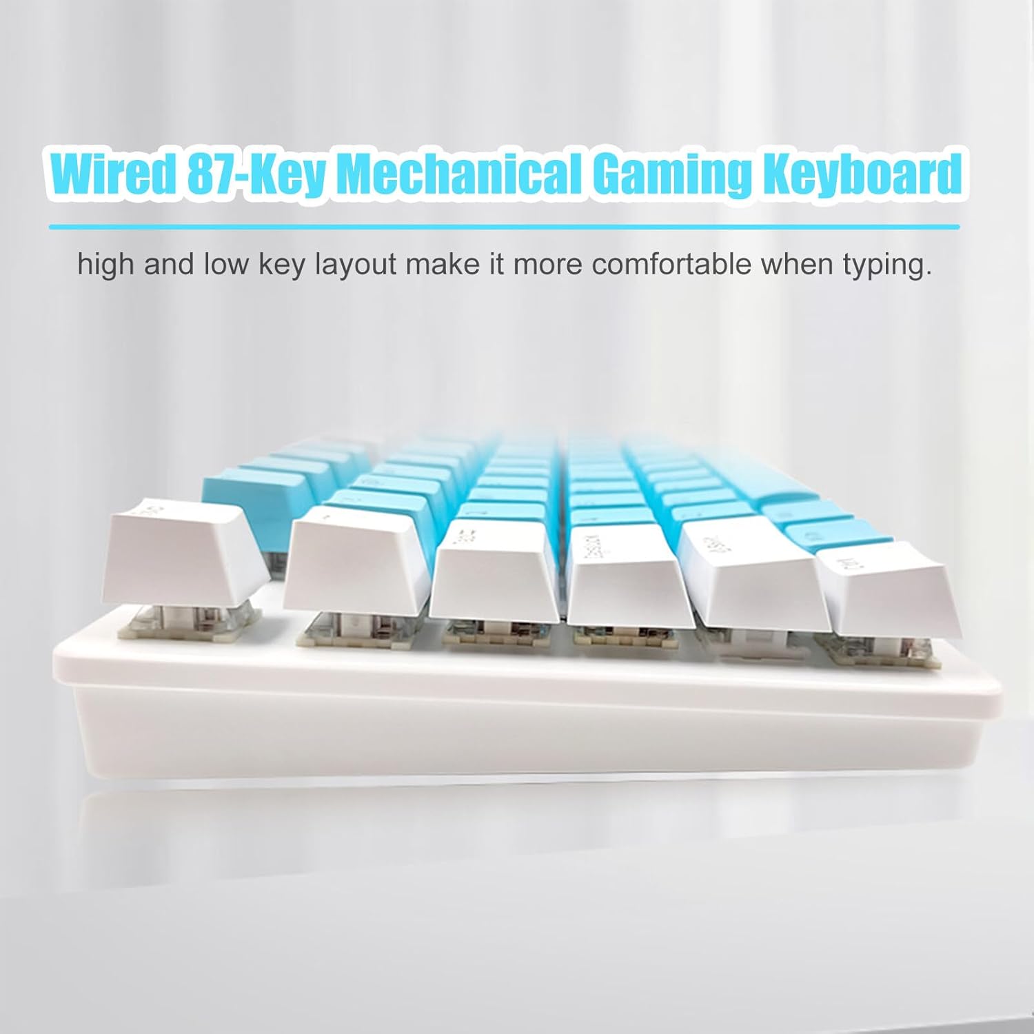 🍀87 keys compact design, not only retaining the commonly used keys in the game but also enlarging mouse space on the right hand.