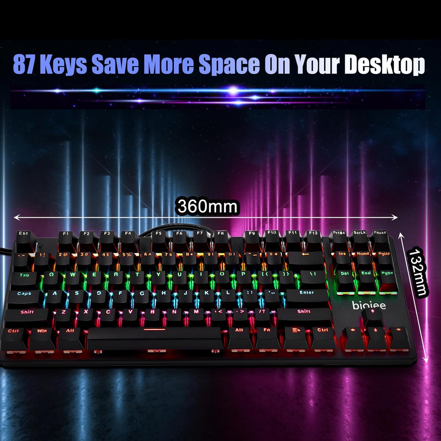 biojee Wired 87-Key Mechanical Gaming Keyd Rainbow Backlit Keyd For Windows PC Laptop for Game and Office