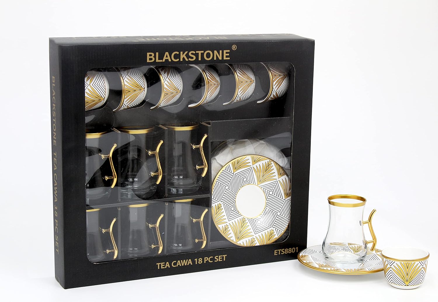 BLACKSTONE Tea Cawa set with Saucer, Elegant Turkish Estikana Cups for Tea Coffee Cup for Home, Office, Set of 18 pcs, Made in Turkey – ETS8801