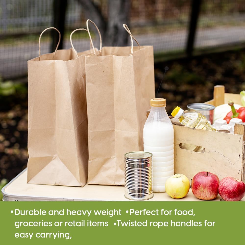 Durable and Heavy Weight: The bags are made from durable and heavy-weight Kraft paper, ensuring they can safely hold food, groceries, or retail items without tearing or ripping.