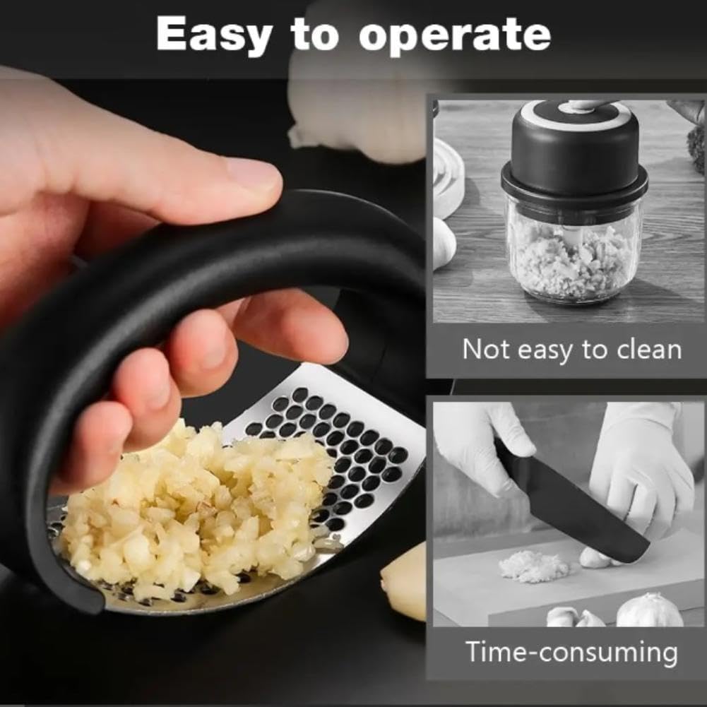 Effortless Garlic Mincing Transform your cooking experience with this high-performance garlic press, designed to effortlessly crush garlic cloves into finely minced pieces with just a single press. Say goodbye to the tedious task of chopping garlic by hand. This tool reduces preparation time, ensuring every dish you create has even flavor distribution that will elevate your culinary creations.