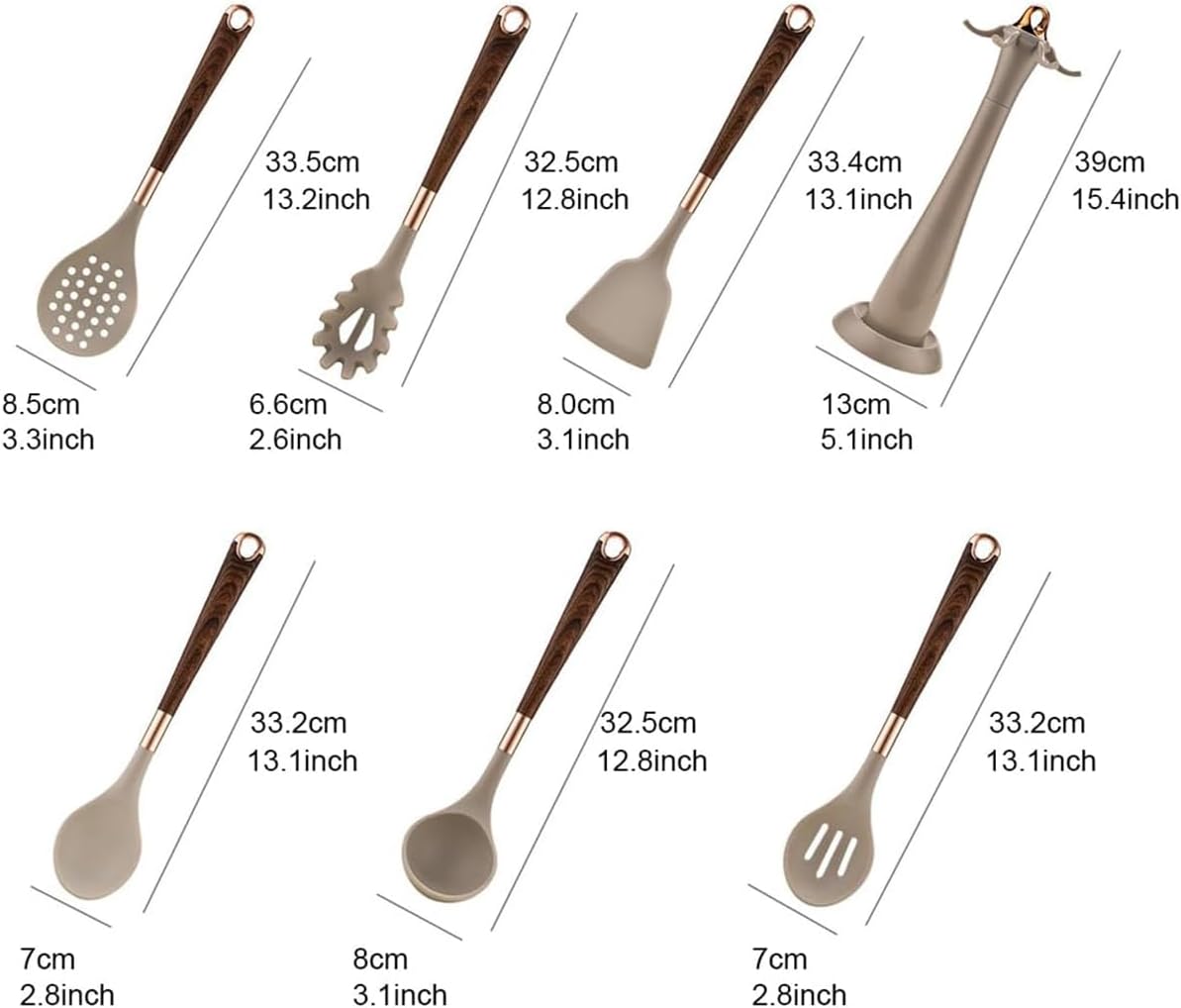 Kitchen Utensils Set Non-stick Silicone Cooking Utensils, Set 7 Pcs Non-slip Handle Heat Resistant Kitchen Utensil, Spatula Slotted Solid Spoon Soup Ladle Slotted Turner Spaghetti Server
