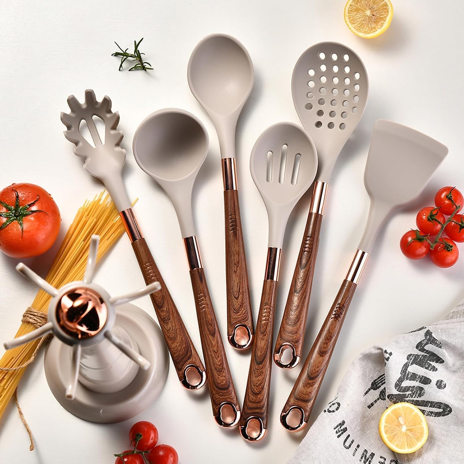 ✅SOFT, NON-SCRATCHING POTS AND PANS: This stylish set has plenty of variety and options to provide the basic utensils you need when cooking. The 6-piece set includes everything from soup ladle, Solid spoon, slotted turner,solid turner, pasta server and spatulas. These kitchen tools cater to a variety of cooking, baking and food processing needs for different kitchen tasks.