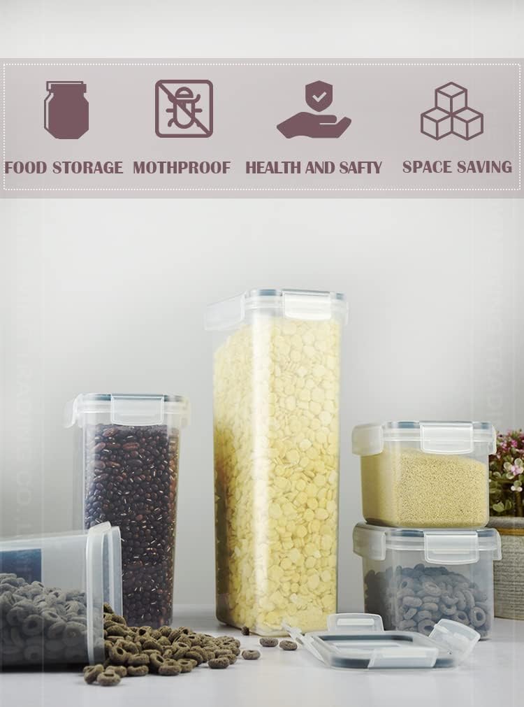 MULTIPLE USES: The containers can be used to store food, spices, fruits, vegetables, Lentils, Dry Fruits Etc. You can use these Containers for your Fridge, Freezer, Cabinets, kitchen, pantry and for many more uses. The ergonomic grip and flip top lid ensures the cereal container easy to hold, Plastic Canisters with Durable Lids for Pantry Organization and Storage