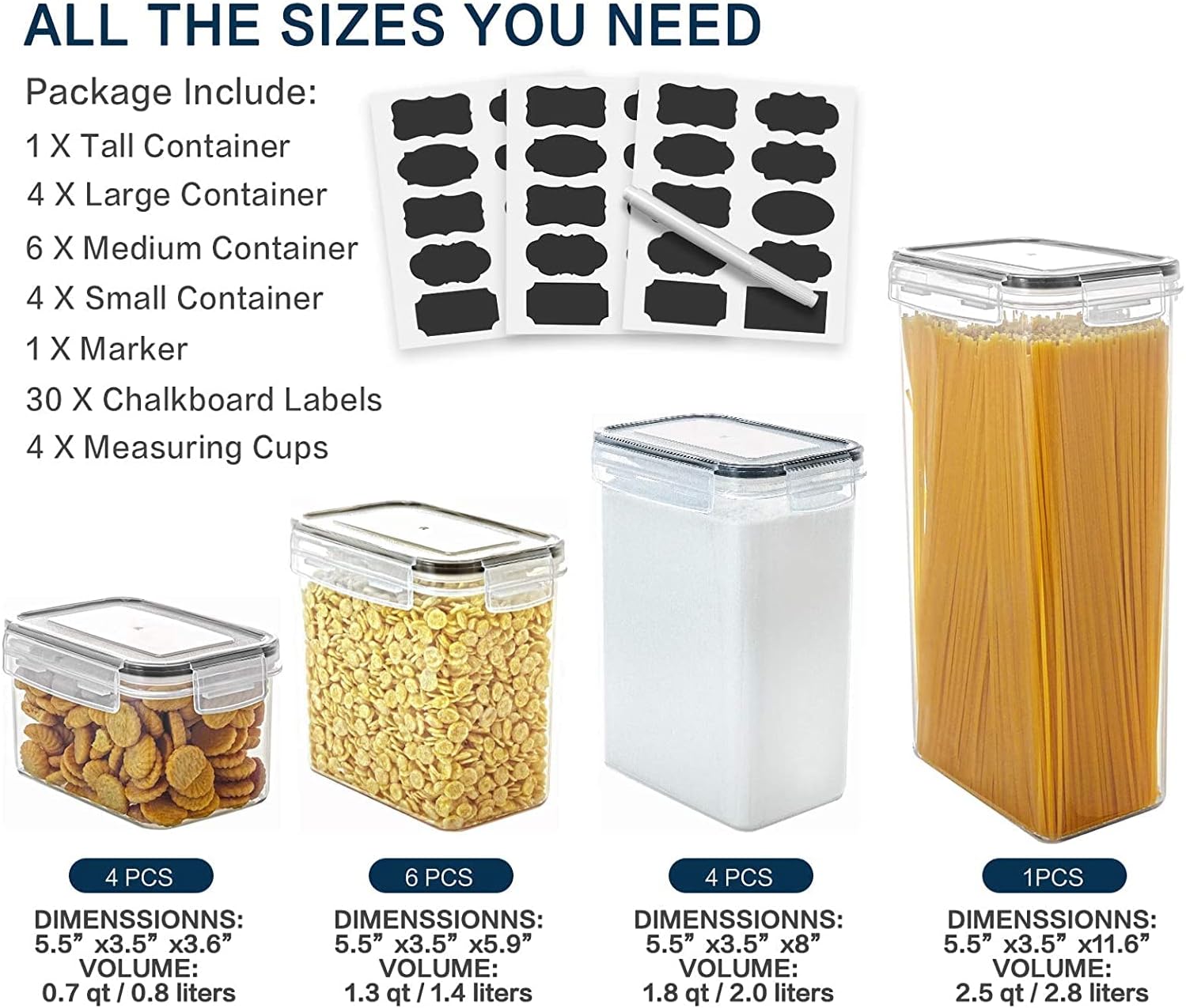Different Size: These food storage containers are perfect for different storage, Total 14 Containers with Snap Lids in four sizes: 4 containers of Capacity 0.8 liters, 4 containers of Capacity 1.4 liters, 4 containers of Capacity 2 liters & 2 containers of Capacity 2.8 liters. These food Storage container are perfect Size for most refrigerators, freezers, cabinets, cupboards and drawers.