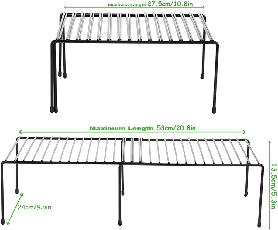 【Expandable Design】 The length of this cupboard shelf rack can be expanded to up to 20.8 inches. This cabinet shelf rack is great for you to organize and stack kitchen items, you can store your bottles cans and pots etc. Features a lightweight design for easy maneuverability, Provide you with a neat and clean room to live and help you create extra storage space to solve various storage problems.