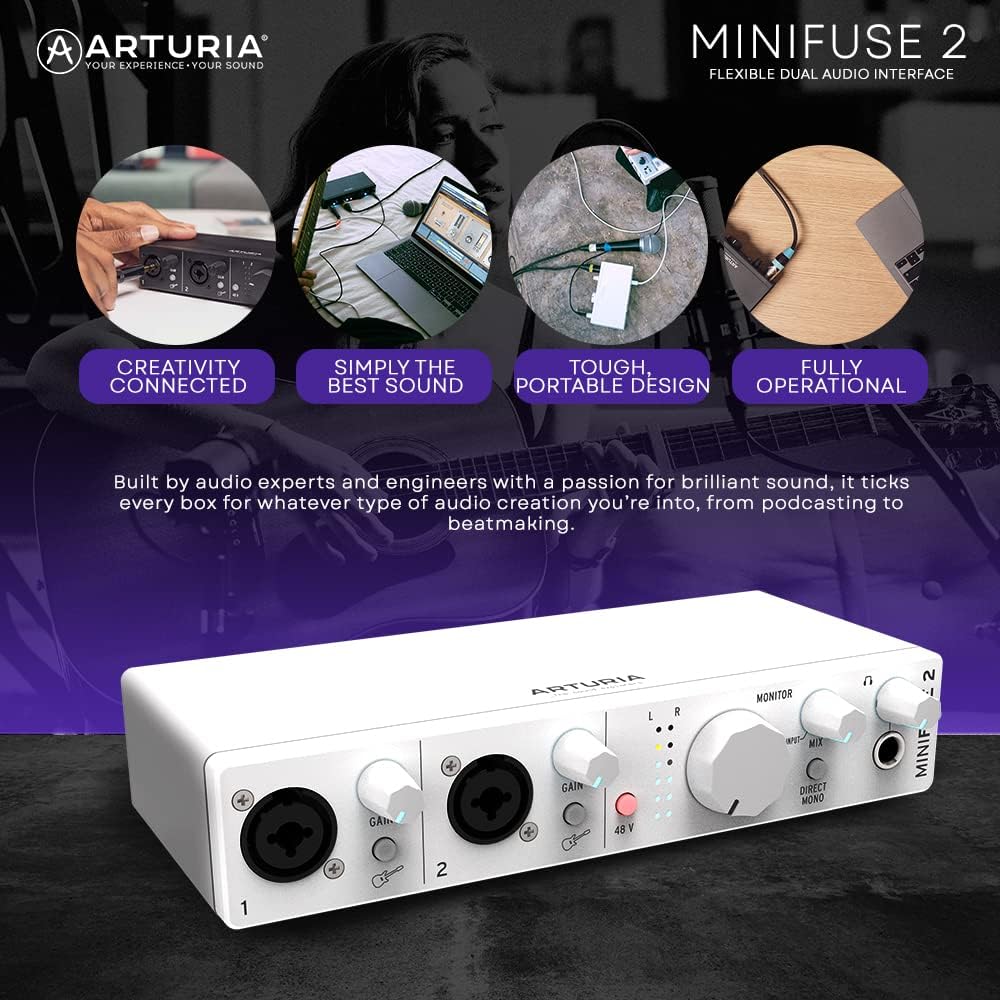 The Arturia MiniFuse 2 is an Easy-to-use Audio and MIDI Interface that Gives you Professional Sound Quality, Smart Connectivity and a Curated Selection of the Industry’s Best Creative Software. From Guitar Tracking to Podcast Recording, this is your Solution for Every Type of Audio Creation.